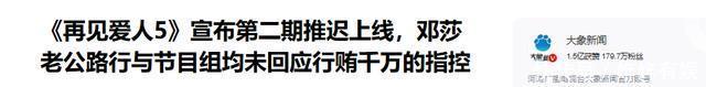 羊羊不吃草 编辑| 娱叔 邓莎夫妇刚刚才将《再见爱人5》的节目热度推上顶峰,节目官微就宣布第二期将调整播出计划推迟上线。 这则毫无征兆的延期,瞬间搅乱了全网舆论。 网友循着线索深挖,竟扒出邓莎丈夫路行的“违法前科”。 或许邓莎也不会想到,她本想借助节目疗愈自己的婚姻,却意外扯出丈夫的违法污点。 更意外的是,拍摄棚内观察员林心如、李维嘉的犀利点评,竟也从“金句输出者”变成“争议关联方”。